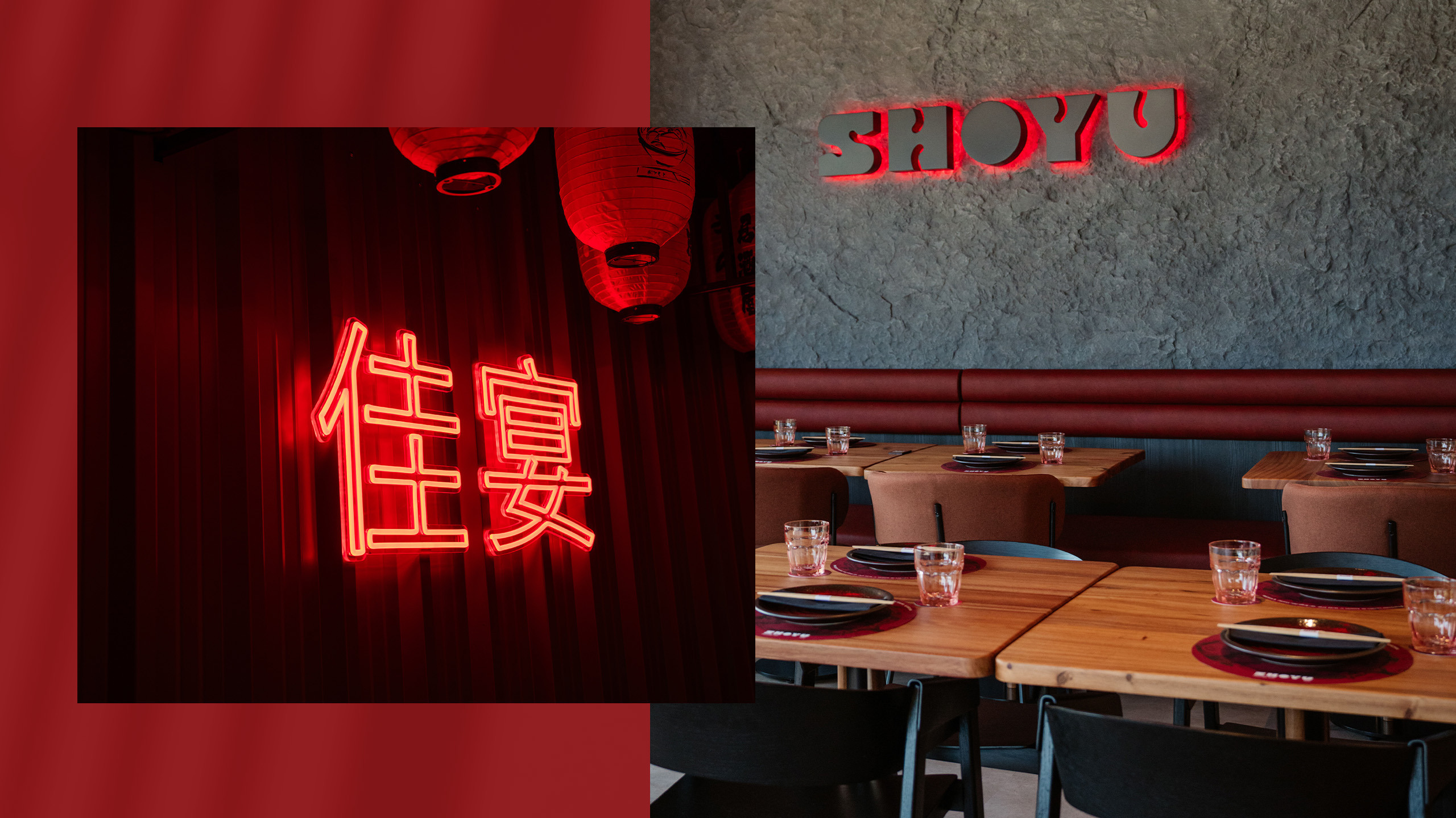 - Dois tons de vermelho (um mais profundo, outro vibrante) evocam paixão, sabor e herança cultural japonesa.